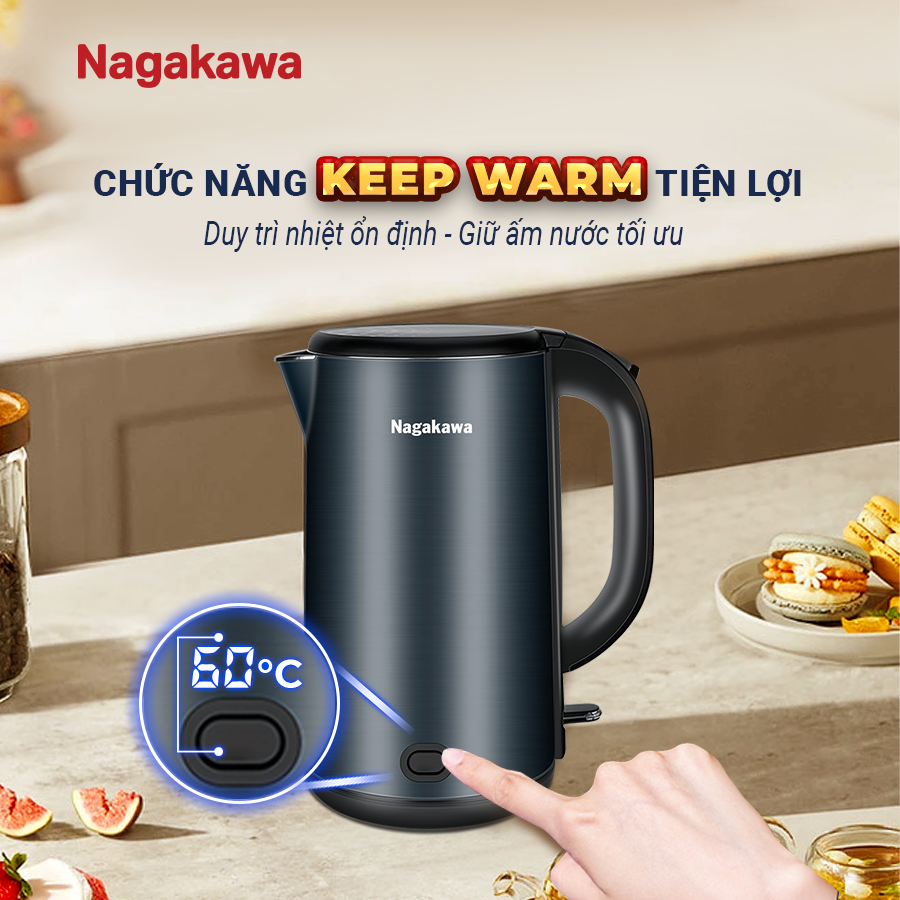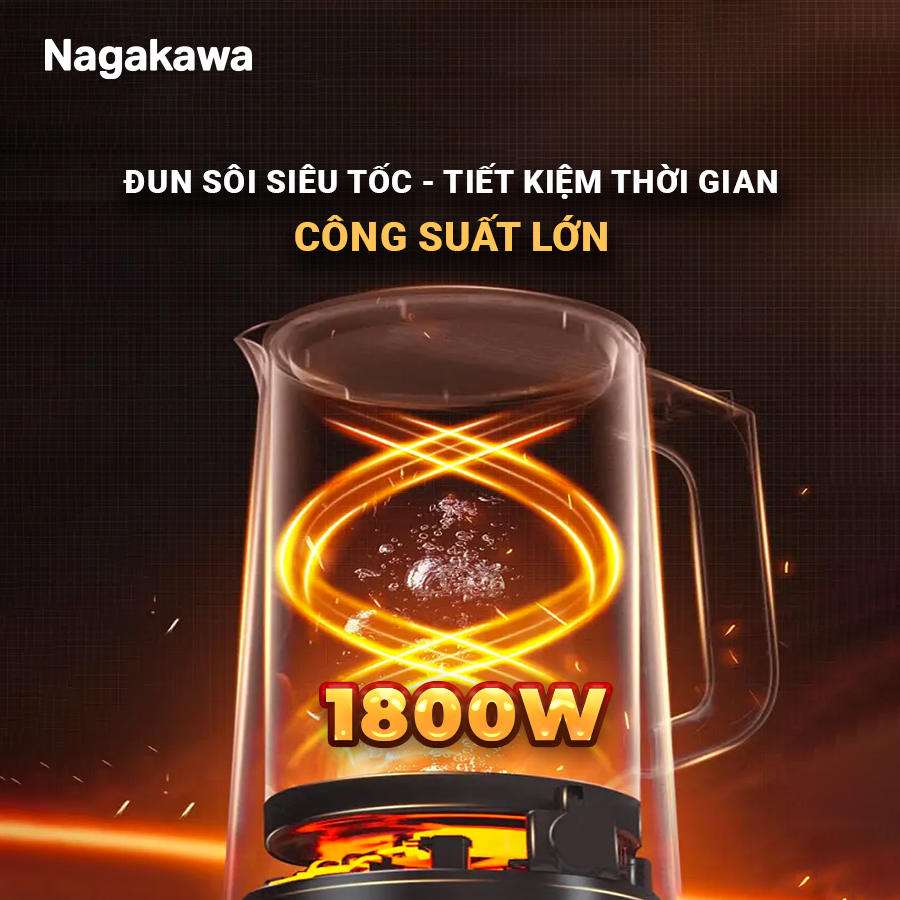 Ấm siêu tốc 1.8L Nagakawa NAG0319 có công suất là 1800w. Công suất cực đại này giúp nước sôi nhanh chóng, rút ngắn thời gian đun nấu. Phục vụ kịp thời trong trường hợp pha sữa cho bé, nhà có khách, nấu ăn,...