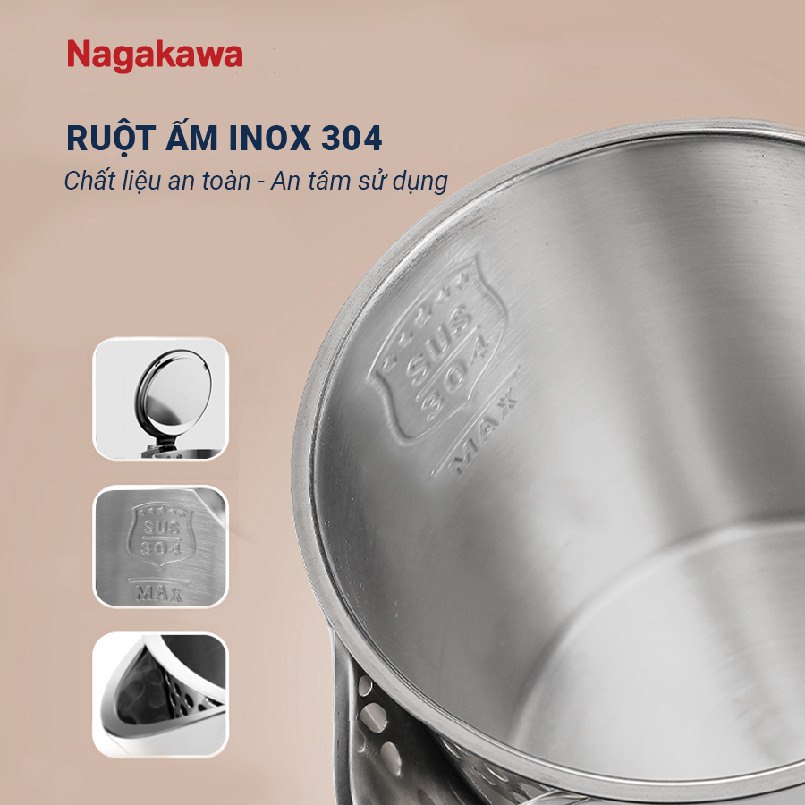 - Ruột ấm chất liệu inox 304 an toàn sức khỏe