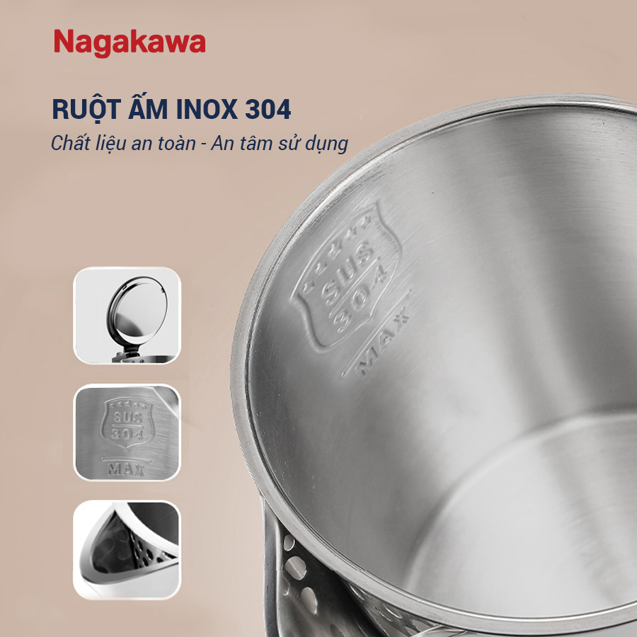 - Ruột ấm chất liệu inox 304 an toàn sức khỏe