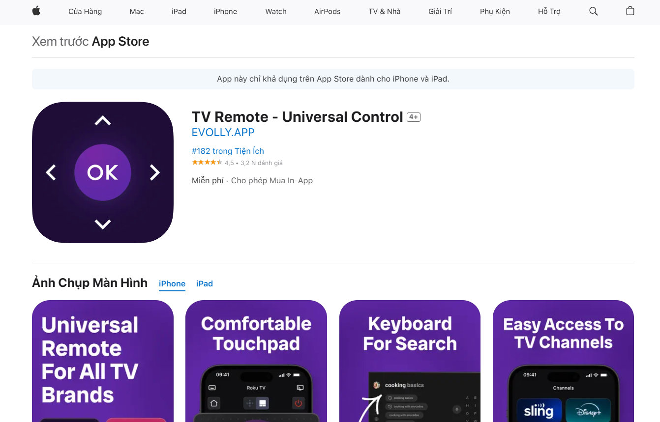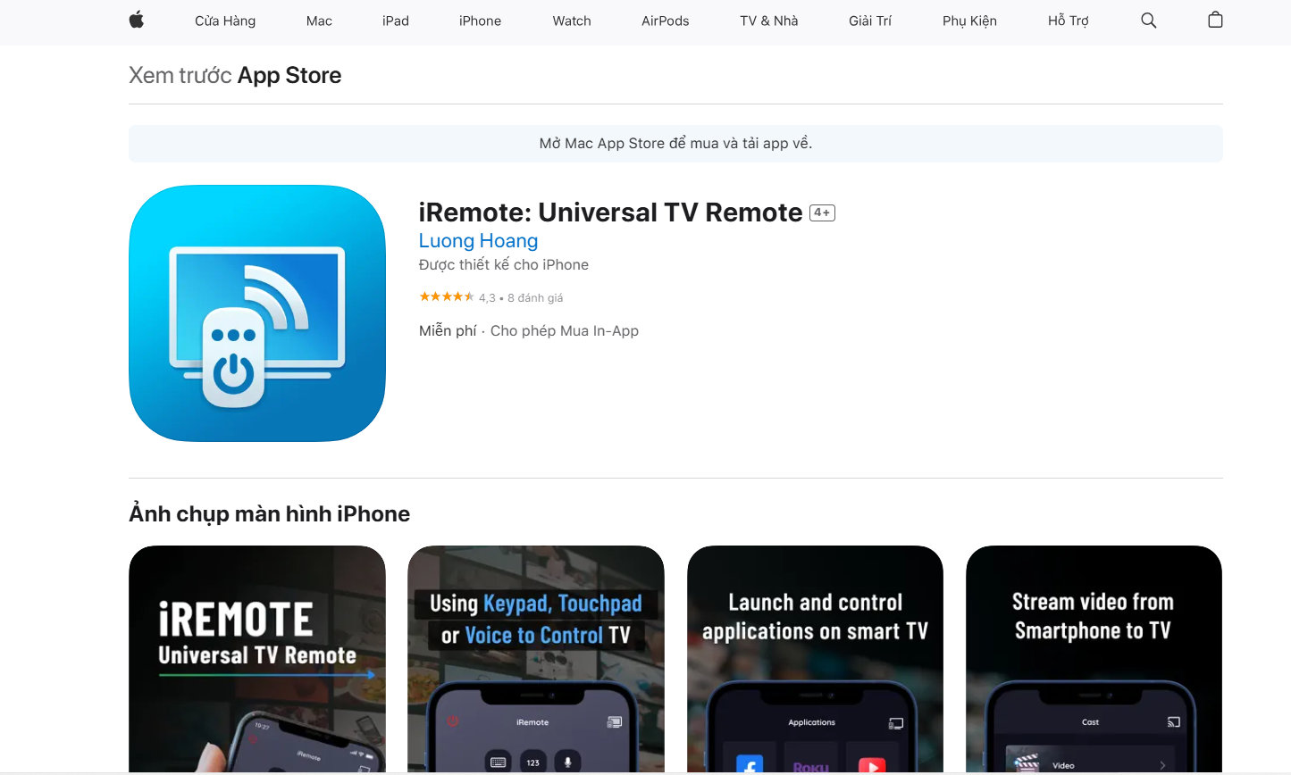 Ứng dụng bắt buộc điện thoại phải tích hợp IR blaster, không phải tất cả các thiết bị iOS đều có tính năng này.