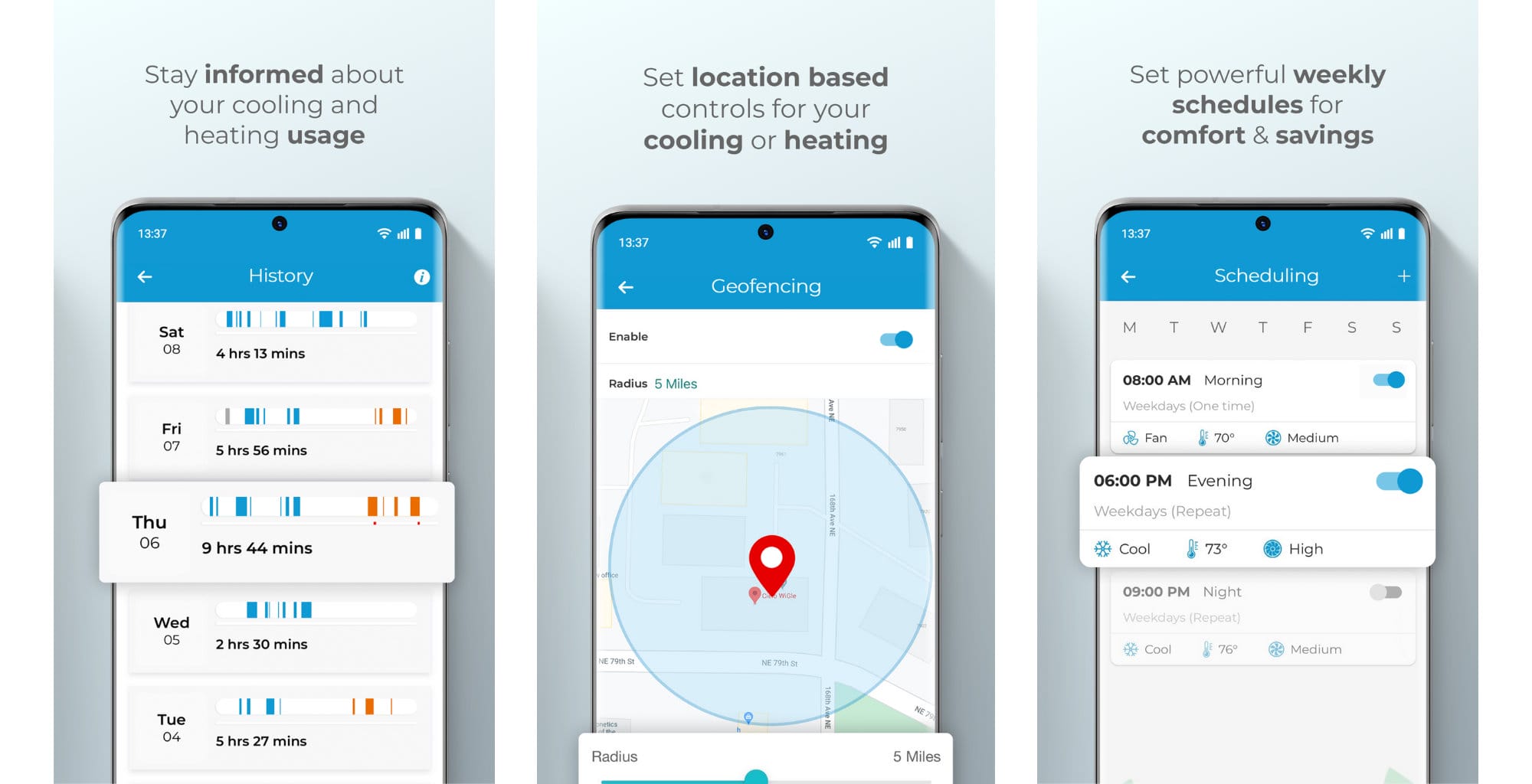 Thiết lập các lịch trình làm mát hoặc sưởi ấm tự động theo thời gian và vị trí.
