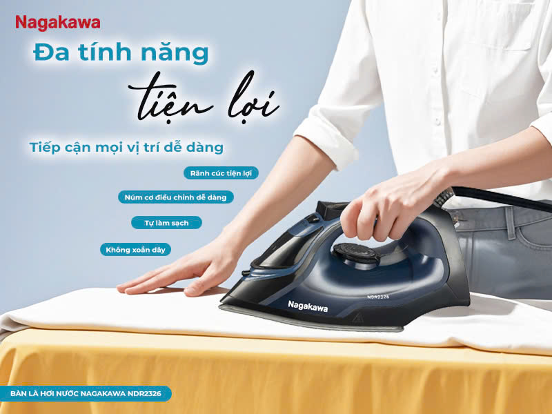 Bàn là hơi nước Nagakawa NDR2326 được thiết kế cho những ai ưu tiên sự chỉn chu nhưng không muốn tốn nhiều thời gian cho việc chăm sóc trang phục. Nhờ công suất mạnh, mặt đế chống dính chất lượng cao và hệ thống chế độ ủi đa dạng, chiếc bàn là này giúp bạn làm phẳng quần áo nhanh chóng, nhẹ tay và chính xác, đáp ứng hoàn hảo nhu cầu sử dụng hằng ngày trong nhịp sống bận rộn.