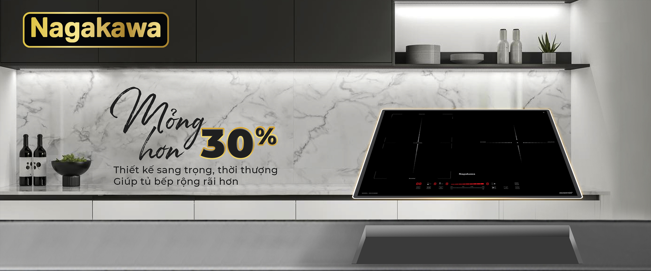 UltraSlim Nagakawa NK3C08M thiết kế mặt kính Kanger mài vát bo viền 4 cạnh sang trọng, có độ dày chỉ 58mm - mỏng hơn 30% so với các sản phẩm bếp từ thông thường. Giờ đây, căn bếp không chỉ được "giải phóng" diện tích tối đa mà còn trở nên đẳng cấp hơn, hiện đại hơn, khơi nguồn cảm hứng sáng tạo vạn món ăn ngon.