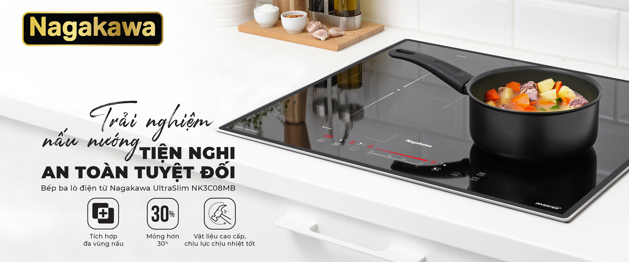 Trải nghiệm nấu nướng tiện nghi, an toàn tuyệt đối với bếp ba lò điện từ Nagakawa UltraSlim NK3C08MB