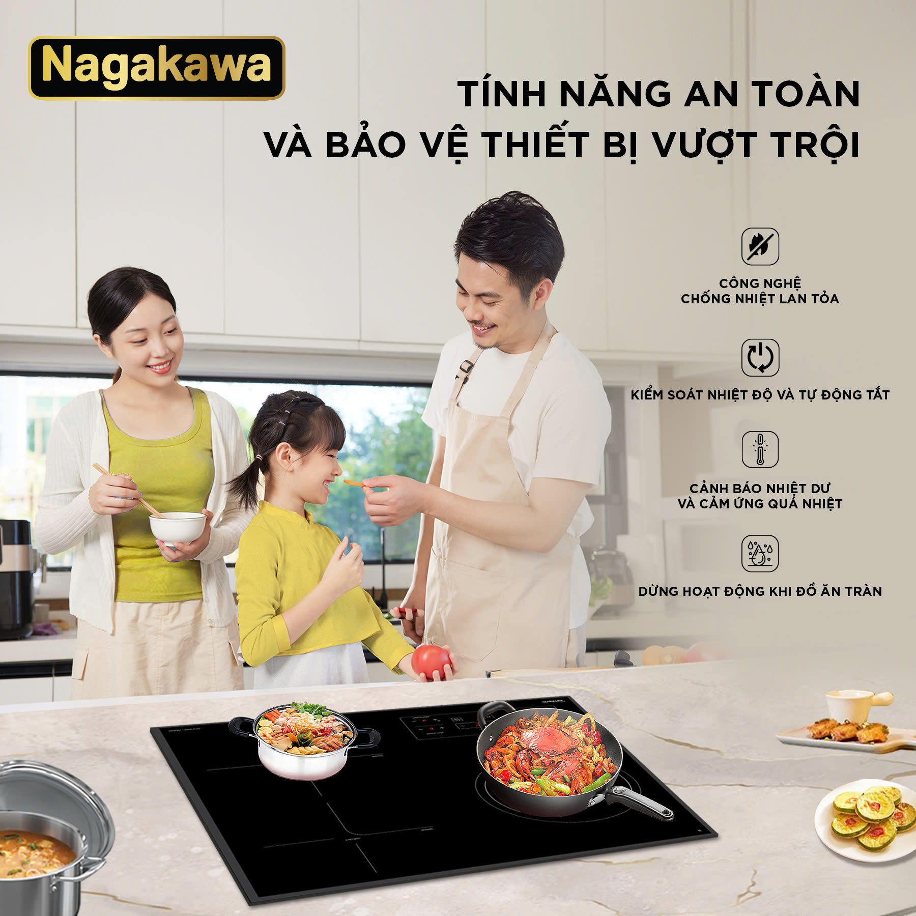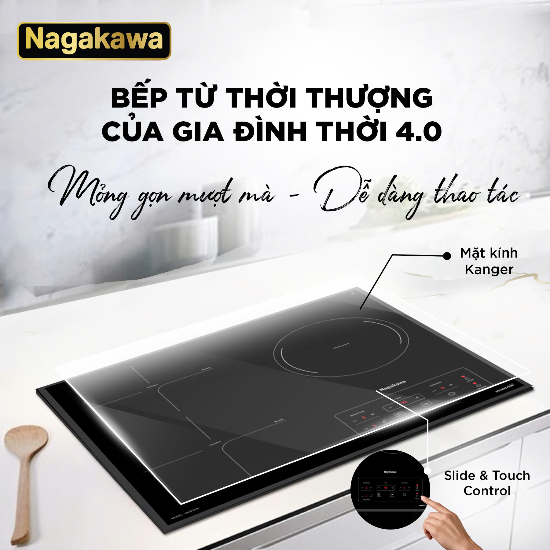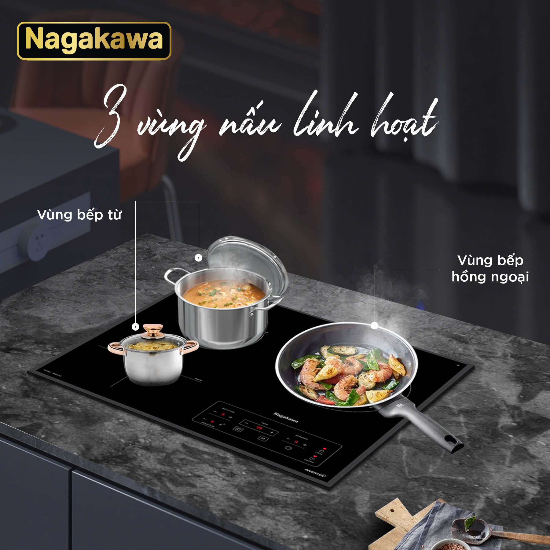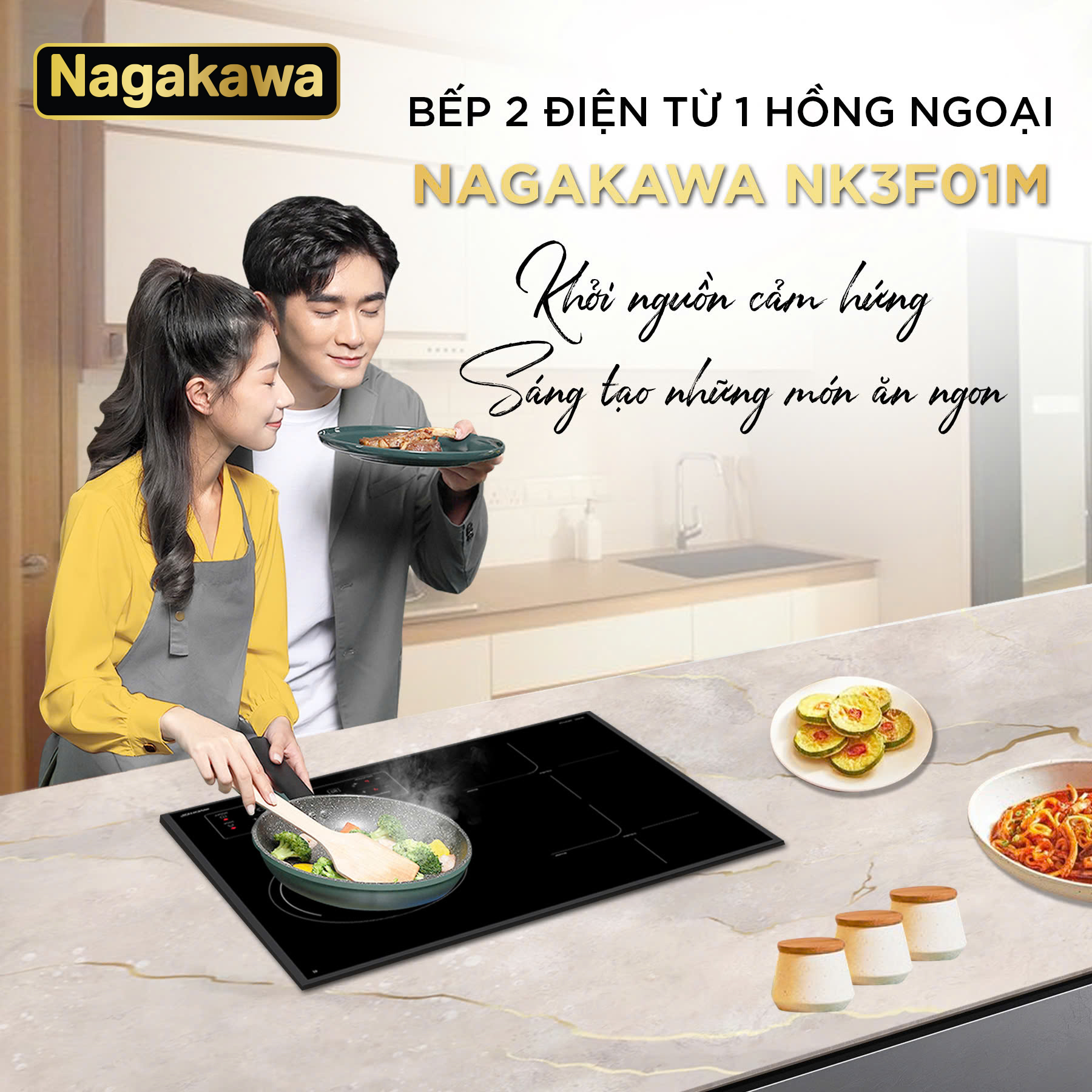 Bếp ba 2 điện từ 1 hồng ngoại Nagakawa NK3F01M khởi nguồn cảm hứng sáng tạo những món ăn ngon, điểm nhấn của căn bếp hiện đại, thời thượng 4.0.
