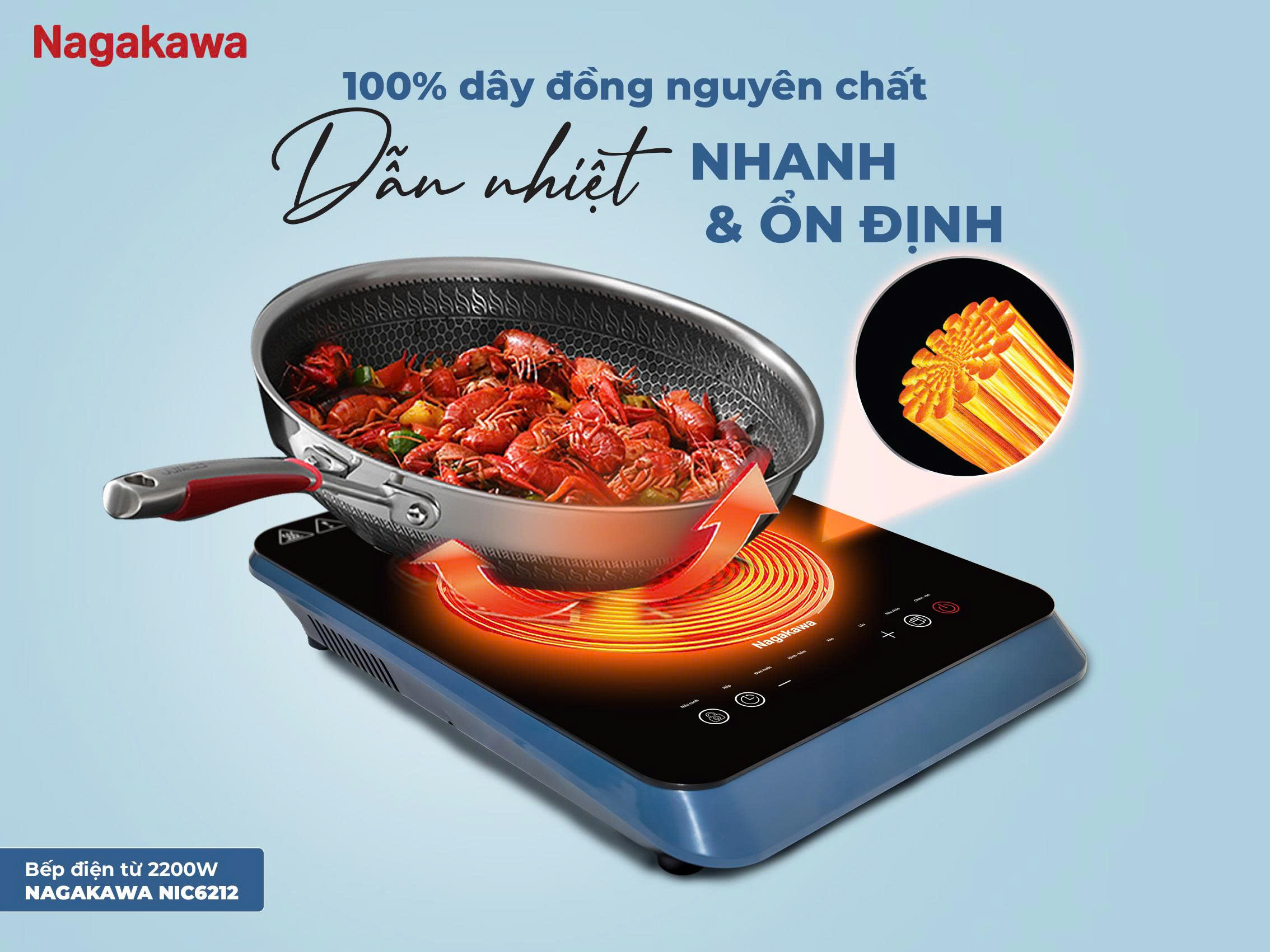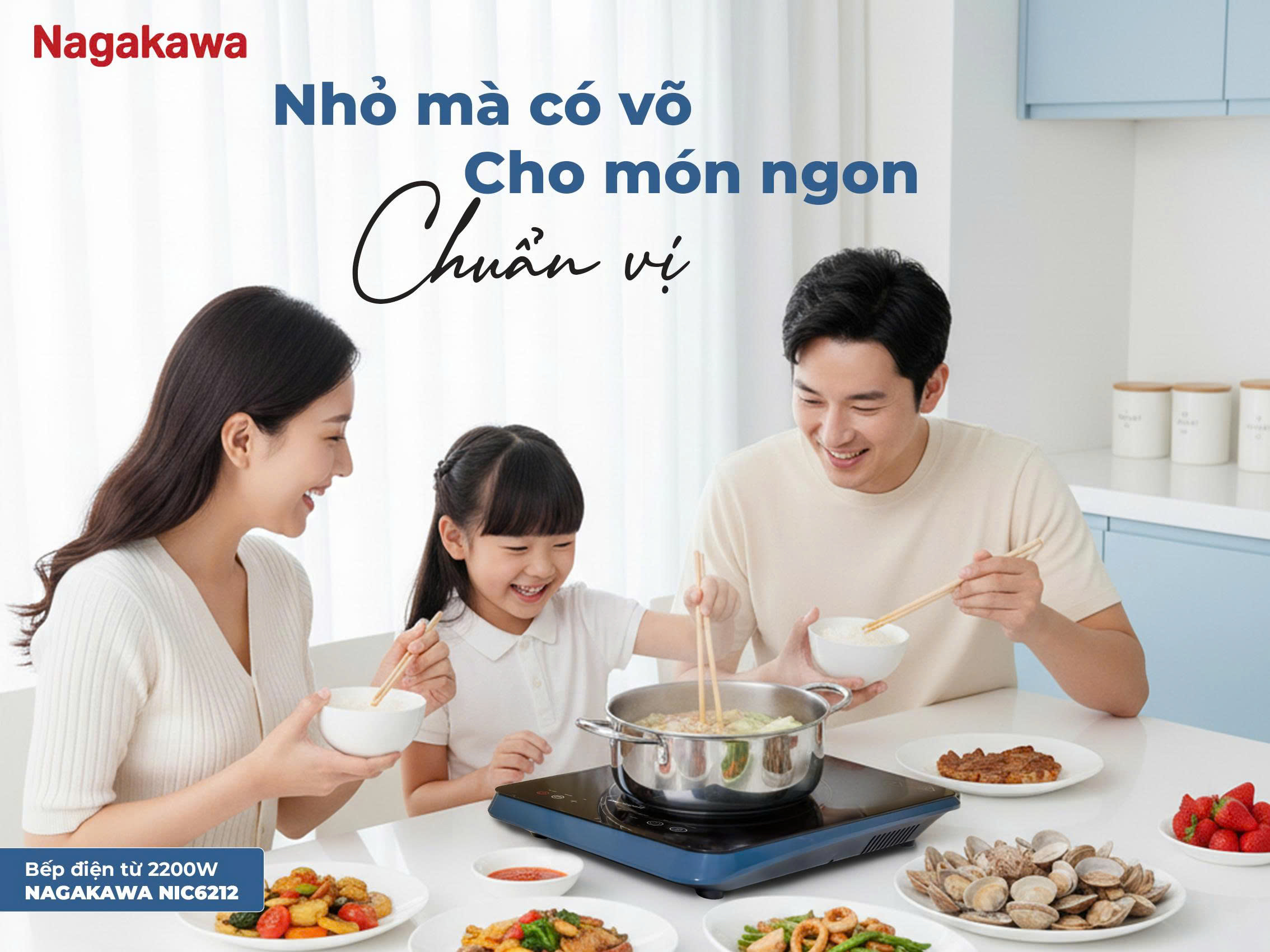 Trong nhịp sống bận rộn, ai cũng mong muốn có một căn bếp vừa tiện lợi vừa an toàn để chăm sóc bữa ăn cho cả nhà. Đặc biệt với những gia đình có trẻ nhỏ hoặc ông bà lớn tuổi, một chiếc bếp điện từ nhỏ gọn, không khói, không gây khô da, khô mũi lại càng trở thành lựa chọn lý tưởng. Bếp điện từ 2200W Nagakawa NIC6212 chính là người bạn đồng hành hoàn hảo, giúp bạn nấu ăn nhanh chóng, an toàn và tiết kiệm hơn mỗi ngày.