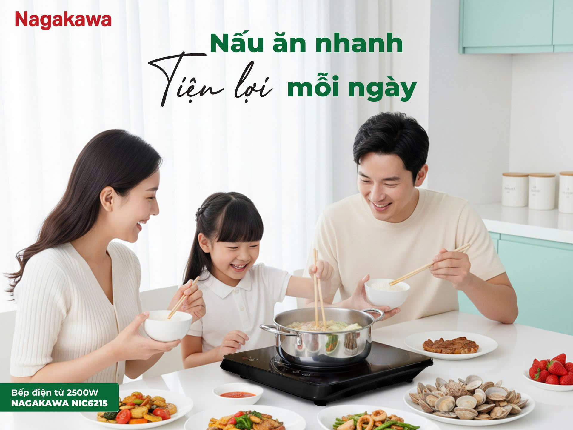 Trong căn bếp gia đình, ai cũng mong có một chiếc bếp vừa nhỏ gọn, vừa đủ mạnh mẽ để đồng hành trong những bữa cơm ấm cúng. Đặc biệt với những gia đình có trẻ nhỏ hay ông bà lớn tuổi, một chiếc bếp điện từ an toàn, không khói, không gây khô da, khô mũi chính là lựa chọn lý tưởng. Bếp điện từ 2500W Nagakawa NIC6215 mang đến sự cân bằng hoàn hảo: gọn gàng, hiện đại nhưng vẫn đủ mạnh để rút ngắn thời gian nấu nướng, giúp bạn chăm sóc bữa ăn ngon cho cả nhà.