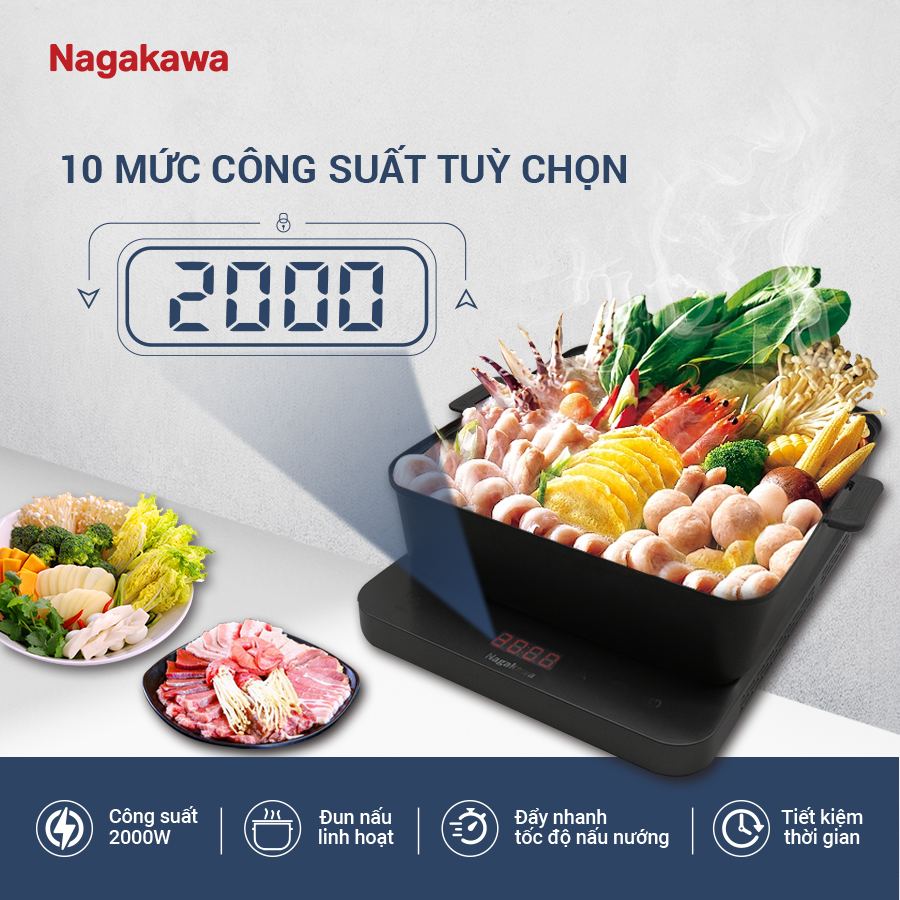 Bếp từ đơn Nagakawa NAG0717 có 9 mức công suất điều chỉnh linh hoạt giúp cho việc nấu nướng dễ dàng và thuận tiện hơn. Bạn có thể nấu các món chiên nhỏ lửa đến các món canh luộc. Bếp có công suất cực đại là 2000W, giúp bạn đẩy nhanh tốc độ nấu nướng, phục vụ bữa ăn nhanh chóng và tiết kiệm thời gian.