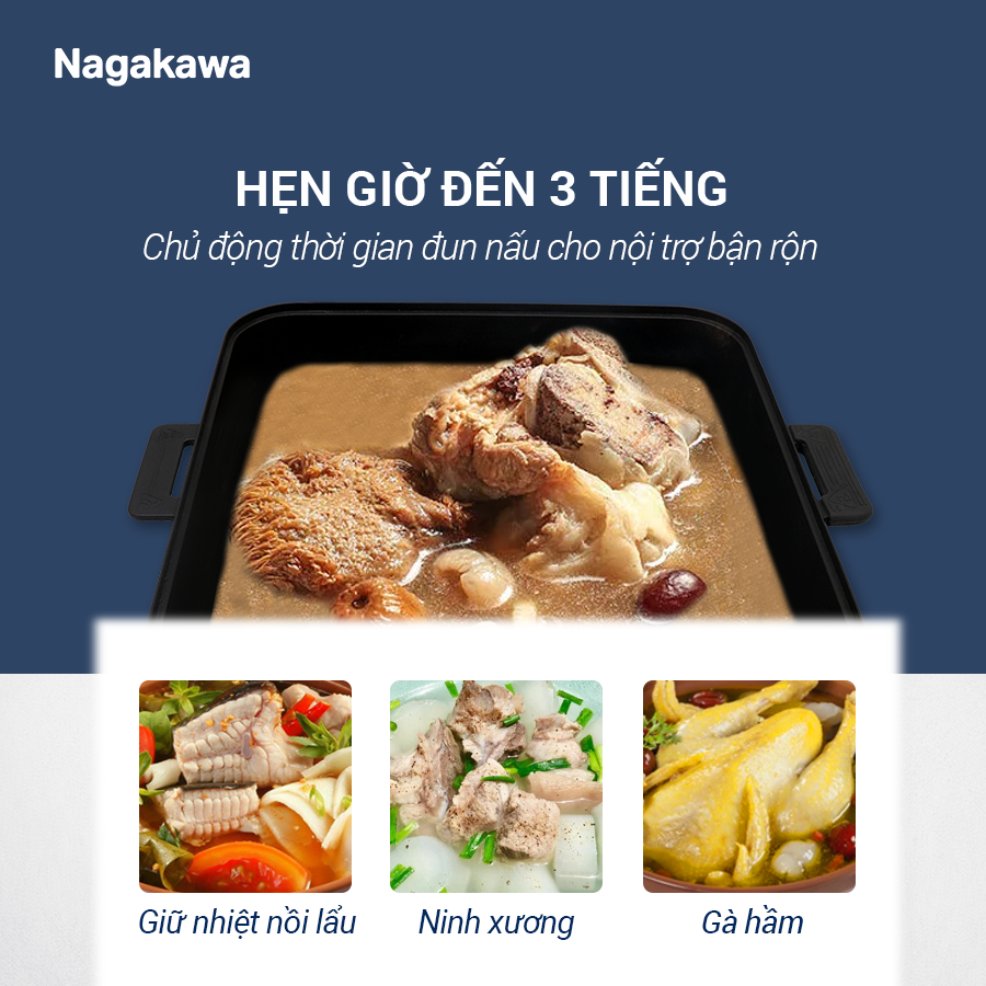 - Chức năng hẹn giờ từ 5 phút đến 3 tiếng chủ động thời gian đun nấu