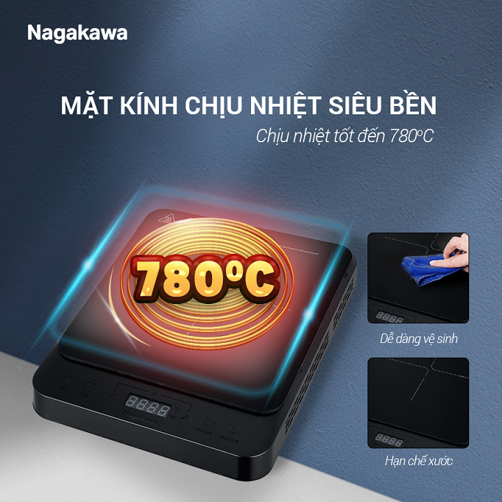 Mang thiết kế đặc biệt, bếp điện từ đơn Nagakawa NAG0717 gây ấn tượng ngay từ ánh nhìn đầu tiên. Sản phẩm có màu đen sang trọng, thiết kế tinh tế đến từng đường nét; vẻ đẹp hiện đại, giàu tính thẩm mỹ cho căn bếp. Bếp được trang bị mặt kính cường lực, chịu nhiệt tốt, chống xước, siêu bền và dễ dàng vệ sinh. Sự đổi mới trong phong cách đã giúp cho “diện mạo” của bếp từ NAG0717 được nâng tầm: tối giản hơn, sắc nét hơn, nhỏ gọn hơn.