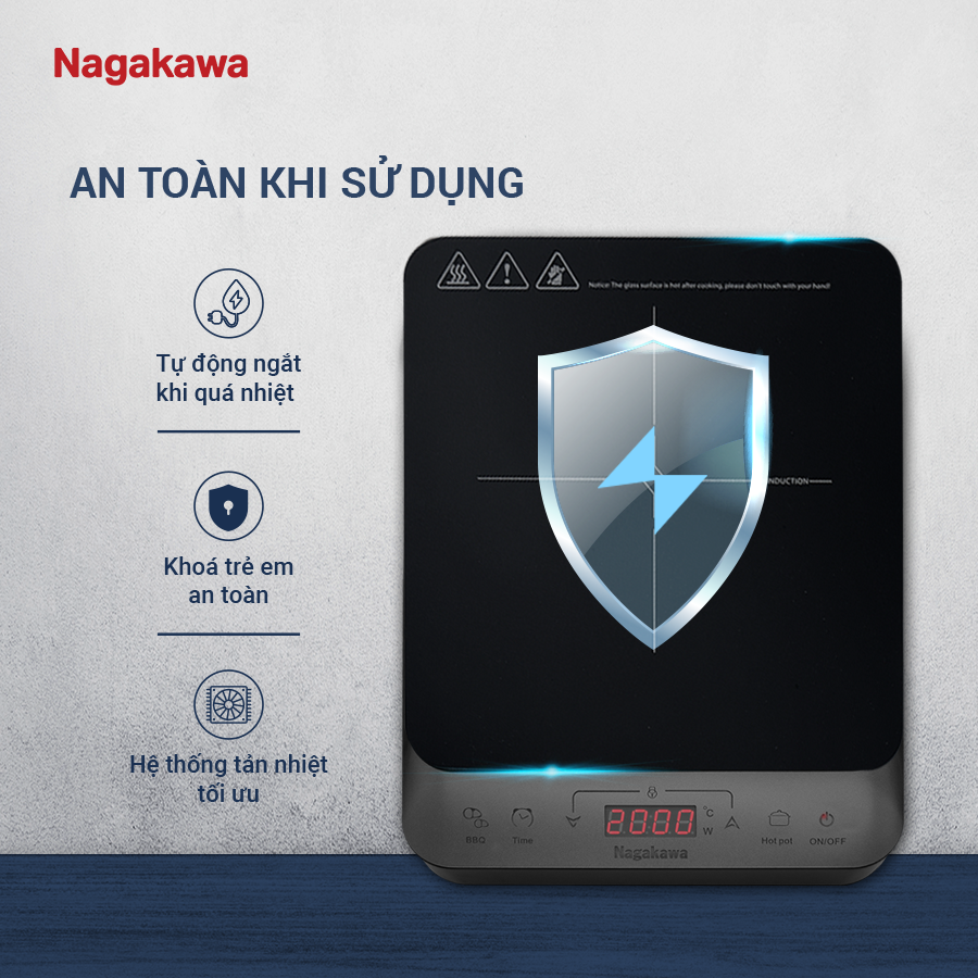 | Tính năng an toàn | Khóa bảng điều khiển Tự ngắt khi quá nhiệt Tự ngắt khi không có nồi |