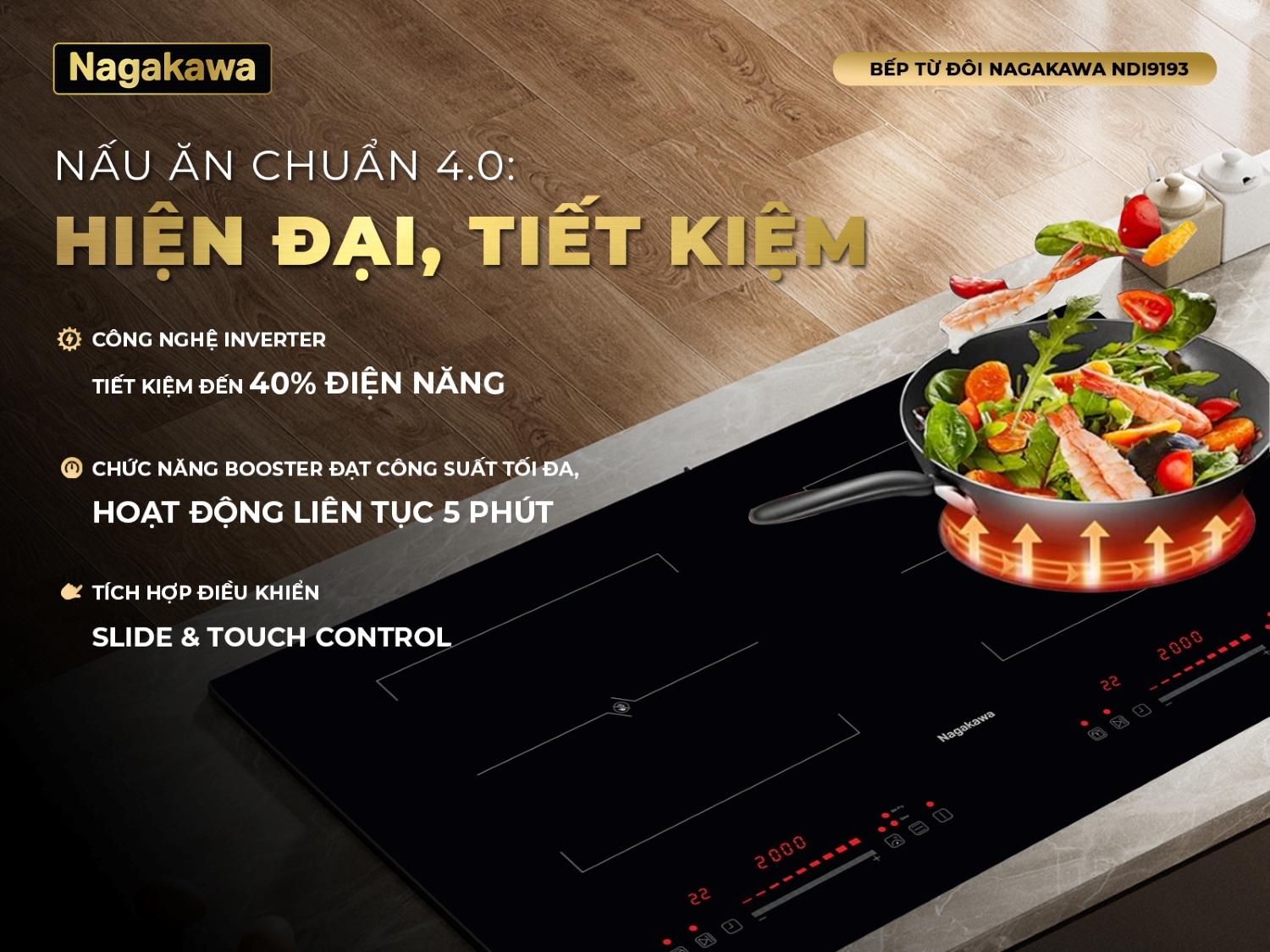 Bếp từ đôi Nagakawa NDI9193 - Sang trọng, tiện nghi và tiết kiệm điện