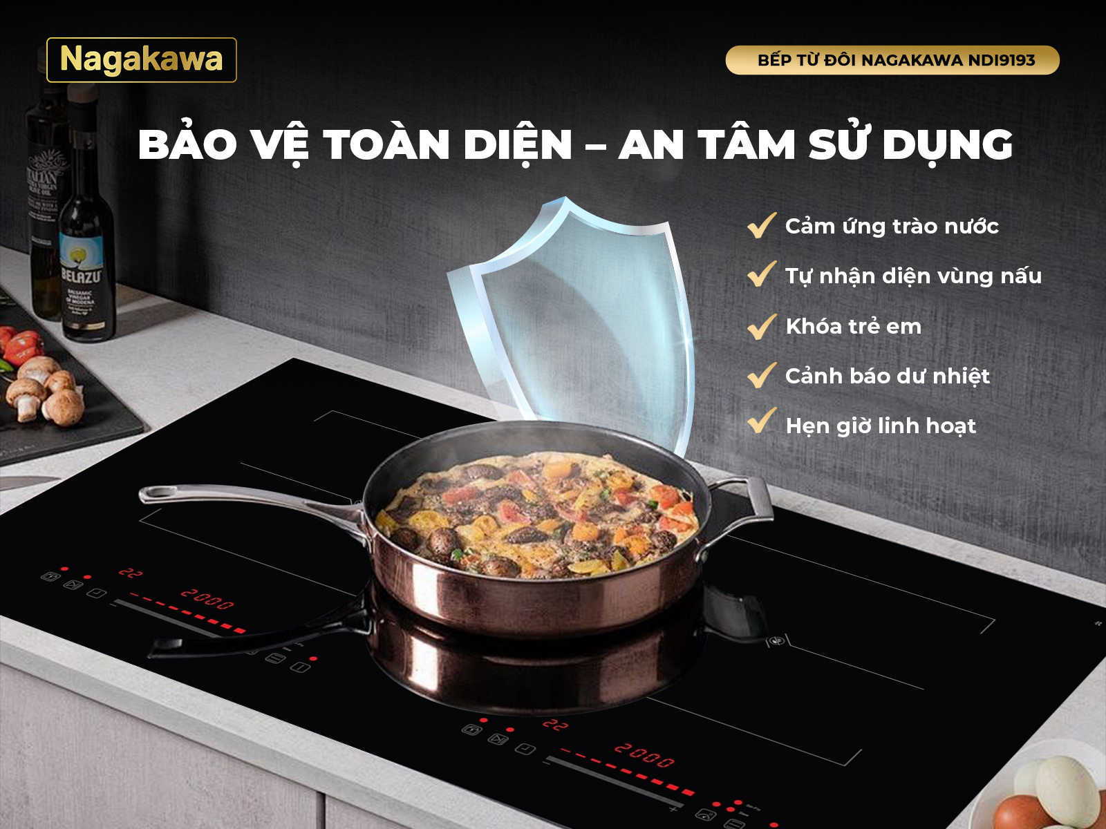 Bếp từ Nagakawa NDI9193 không chỉ đảm bảo hiệu suất nấu nướng mà còn được tích hợp các tính năng an toàn thông minh hàng đầu.