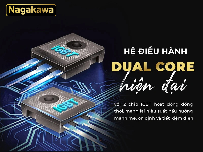 Bếp đôi điện từ Nagakawa NK2C02M được trang bị hệ điều hành Dual Core hiện đại, sử dụng 2 chip IGBT hoạt động đồng thời, mang đến nhiều ưu điểm nổi bật. Với công suất mạnh mẽ, có thể đạt tối đa 2400W trong vòng vài giây, hoạt động vô cùng ổn định đảm bảo cho việc nấu nướng được hiệu quả và tiết kiệm thời gian. Nhờ công nghệ biến tần, hệ thống IGBT hoạt động luân phiên, giúp tối ưu hóa hiệu quả sử dụng điện, đồng thời giảm thiểu hao mòn, kéo dài tuổi thọ cho bếp.