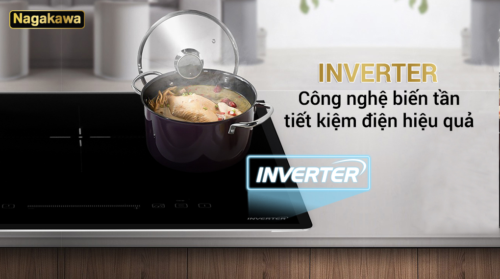 Bếp đôi điện từ Nagakawa NK2C05MB sử dụng công nghệ biến tần Inverter kiểm soát công suất của thiết bị, nhằm tránh hao phí năng lượng trong quá trình sử dụng. Nguyên tắc cơ bản của công nghệ Inverter là dựa trên kiểm soát từng tần số dao động (Hz) của các bảng mạch bên trong bếp, giúp đảm bảo độ ổn định của bếp, tiết kiệm tối đa năng lượng và gia tăng tính năng thông minh cho bếp.