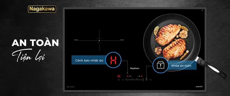 Bếp đôi điện từ Nagakawa UltraSlim NK2C28M sở hữu nhiều tính năng thông minh, chỉ vài thao tác chạm nhẹ tay trên sản phẩm bạn đã lựa chọn được chế độ hoạt động mong muốn như: khóa an toàn, công nghệ chống nhiệt lan tỏa, cảm ứng quá nhiệt, dừng hoạt động khi đồ ăn tràn xuống mắt bếp, chức năng cảnh báo nhiệt dư, tự động tắt bếp khi không sử dụng, công nghệ kiểm soát nhiệt độ bảo vệ thiết bị bếp,... . giúp bạn yên tâm nấu nướng khi nhà có trẻ nhỏ hay phát sinh nhiều công việc cùng lúc.