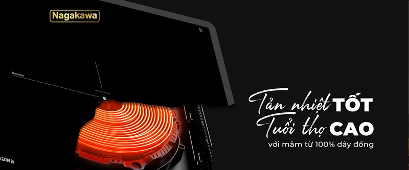 Mâm từ cấu tạo bằng chất liệu đồng dạng cáp (105-160 sợi) dẫn nhiệt nhanh, tản nhiệt tốt giúp bếp hoạt động bền bỉ, tuổi thọ cao.