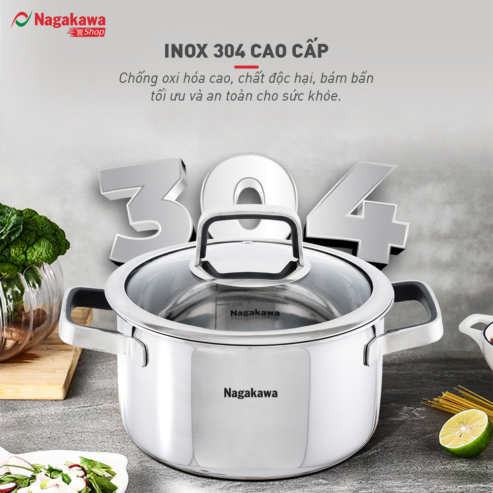 Bộ 3 nồi inox Nagakawa NAG1353 sử dụng chất liệu trong cùng là lớp inox 304 cao cấp, loại hợp kim inox tuyệt vời có khả năng chống oxi hóa cao, không thôi nhiễm các chất độc hại vào thức ăn, có khả năng chống bám bẩn tối ưu và an toàn cho sức khỏe.