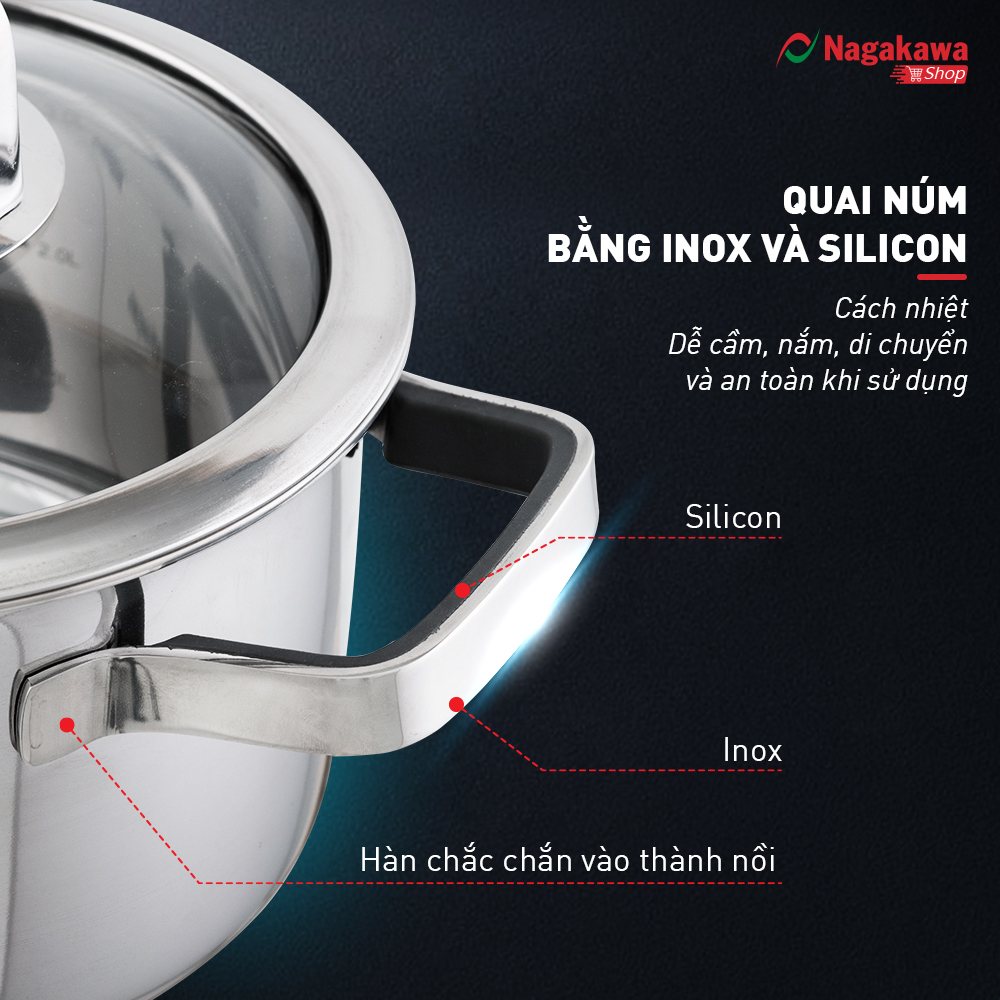 Với quai núm được chế tạo từ inox, được thiết kế to bản, tán đinh chắc chắn, cách nhiệt tốt nên bạn rất dễ cầm và di chuyển trong quá trình sử dụng.