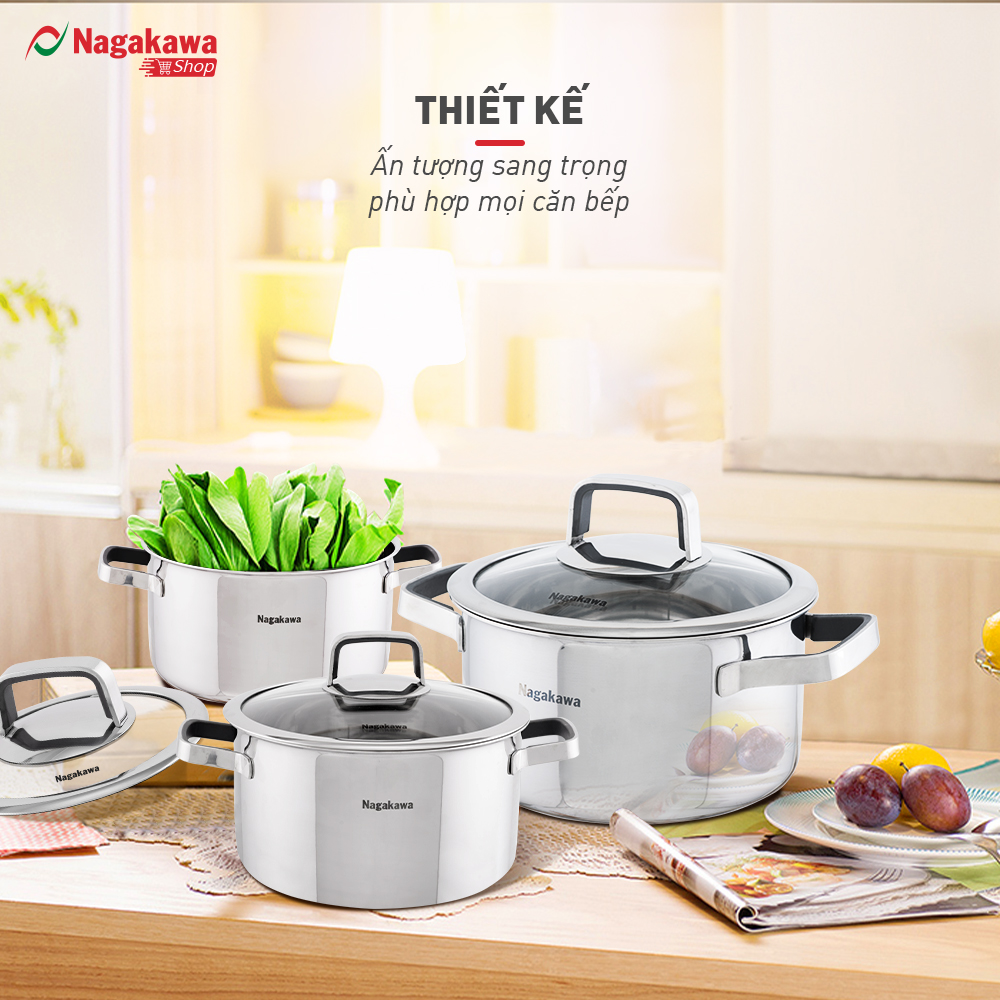 Bộ 3 nồi inox Nagakawa NAG1353 có thiết kế sang trọng với màu inox sáng bóng phù hợp với những căn bếp hiện đại của người Việt. Kiểu dáng độc đáo gần gũi tạo không gian tuyệt vời cho bạn thỏa sức sáng tạo chế biến các món ăn