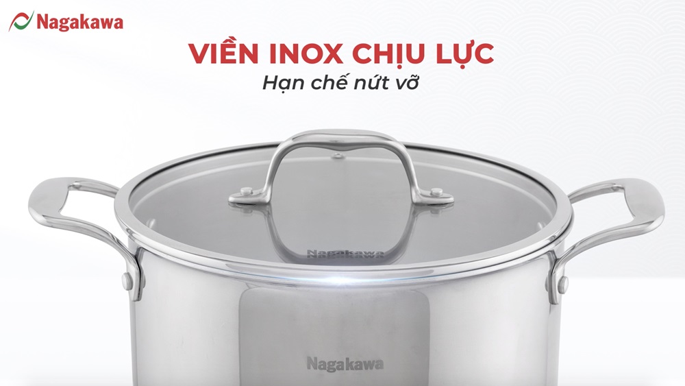 Nắp vung được làm từ kính cường lực, bo viền inox giúp tăng khả năng chịu lực, lực chịu nhiệt, hạn chế tối đa nứt vỡ dưới tác động của nhiệt hay khi va đập.