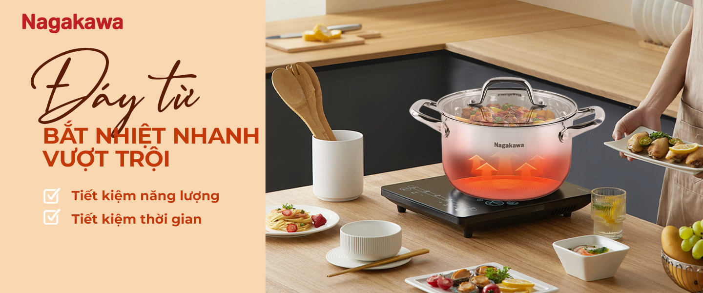 Bộ nồi inox Nagakawa NAG1360 có đáy từ bắt nhiệt nhanh vượt trội, với hiệu suất bắt từ lên đến 99%. Giúp cho khả năng truyền nhiệt một cách hiệu quả nhất và tiết kiệm năng lượng cũng như thời gian nấu nướng. Khả năng bắt từ tốt cũng đảm bảo rằng nhiệt độ được phân bố đều trong nồi, giúp thực phẩm nấu chín đều và ngon miệng. Đây là một tính năng quan trọng để mang lại sự tiện lợi và hiệu suất cao trong mỗi lần nấu ăn.