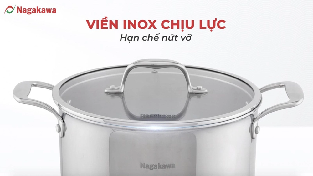 Nắp vung được làm từ kính cường lực, bo viền inox giúp tăng khả năng chịu lực, lực chịu nhiệt, hạn chế tối đa nứt vỡ dưới tác động của nhiệt hay khi va đập.