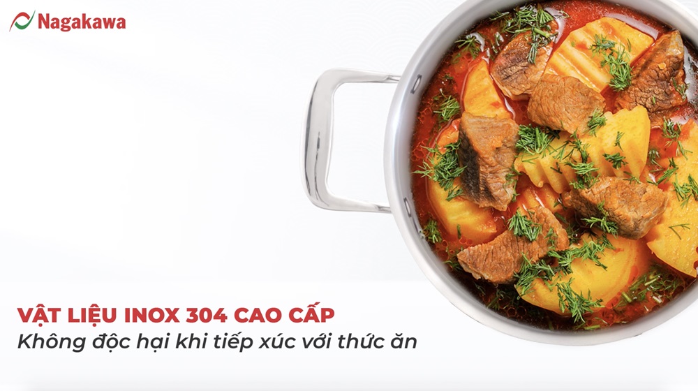 Lớp trong cùng là inox 304, là loại inox cao cấp nhất, không thôi nhiễm chất độc hại kể cả khi đun nấu trên nhiệt độ cao hay dùng lâu năm, đảm bảo an toàn sức khỏe cho người sử dụng, được kiểm định và chứng nhận bởi Viện Dinh Dưỡng - Bộ Y Tế. Inox 304 cũng được ca ngợi bởi khả năng chống oxi hóa cao, không bị han rỉ nên luôn giữ được vẻ sáng bóng bền đẹp sau thời gian dài sử dụng
