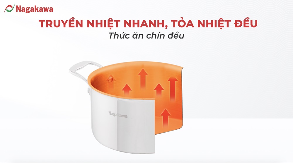 Cấu tạo 5 lớp cũng giúp tránh tình trạng truyền nhiệt cục bộ. Nhiệt độ được phân bổ đều cả ở thành và đáy nồi, thức ăn sẽ chín đều và lưu giữ được hương vị.