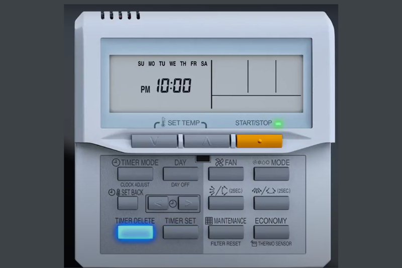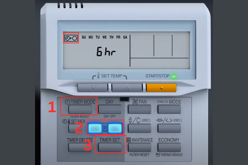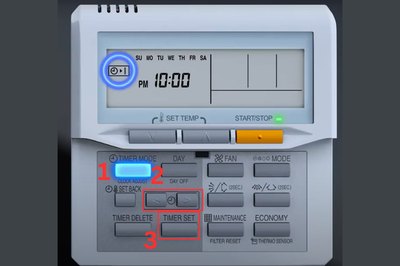 Cách hẹn giờ bật điều hòa trên bảng điều khiển gắn tường.