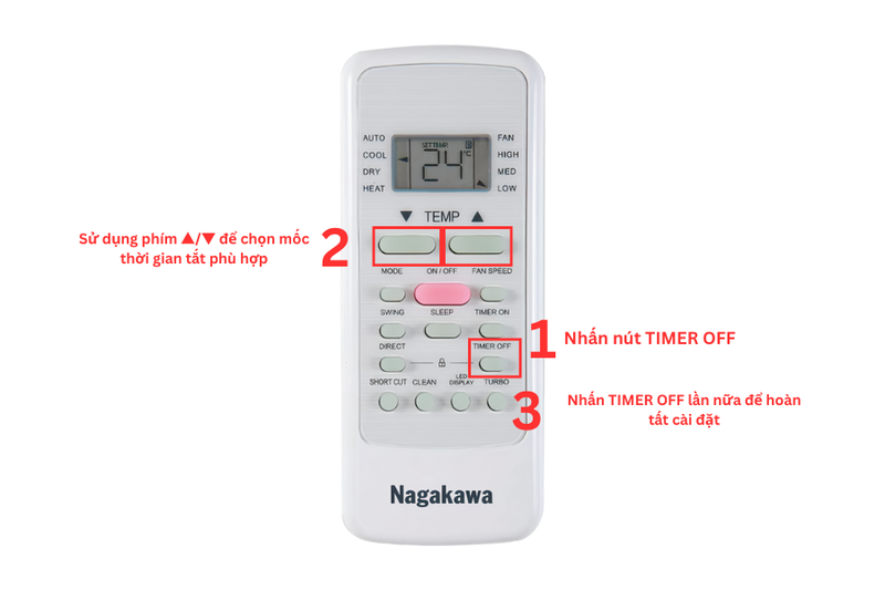 Thao tác hẹn giờ tắt điều hòa Nagakawa.