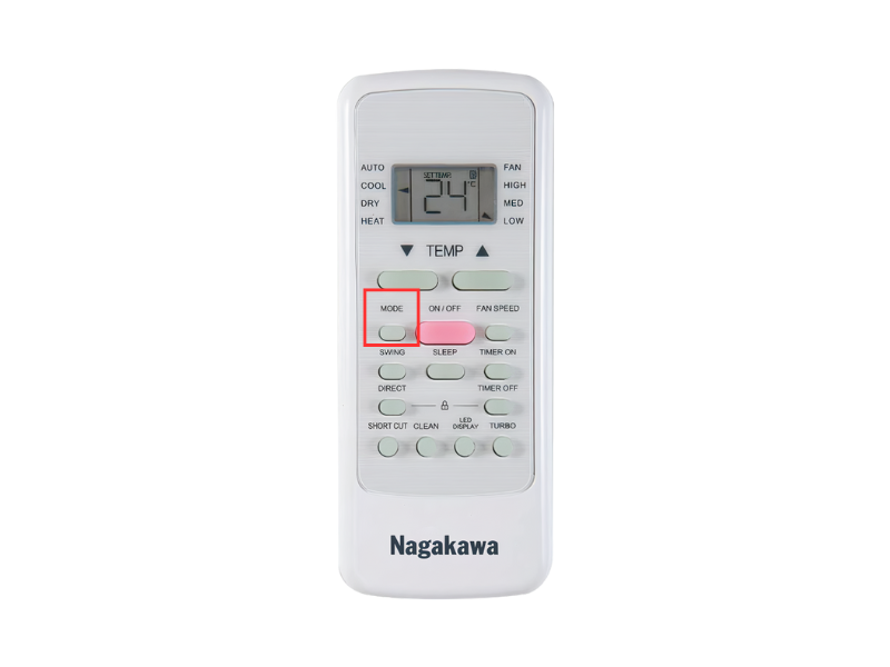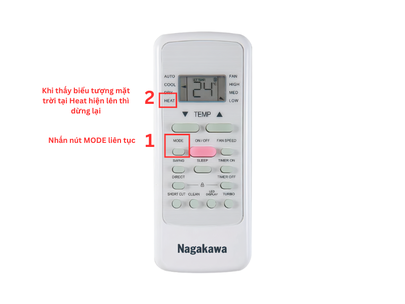Các bước bật chế độ nóng trên điều khiển điều hòa 2 chiều Nagakawa.