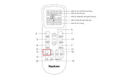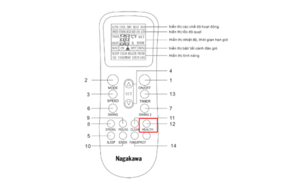 Điều khiển điều hòa 2 chiều Nagakawa.