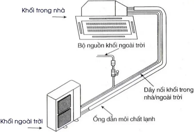 - Ống dẫn môi chất lạnh: Kết nối với dàn nóng, cho phép môi chất lạnh di chuyển vào dàn lạnh để hấp thụ nhiệt và quay lại dàn nóng để tiếp tục chu trình.
