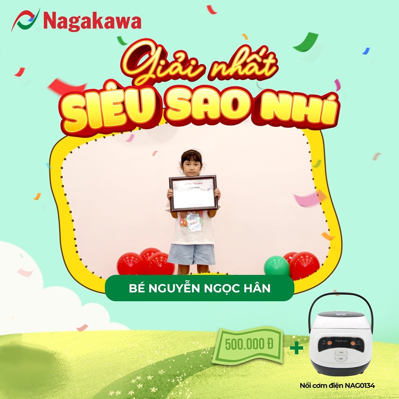 Kết quả chung cuộc, Giải nhất Siêu sao Nhí thuộc về Bé Nguyễn Ngọc Hân - con chị Trịnh Thị Lan Hương thuộc Ban Tài chính Kế toán Tập đoàn Nagakawa với bài dự thi vẽ tranh Căn bếp tiện dụng nhờ các sản phẩm gia dụng Nagakawa với 713 điểm bình chọn.