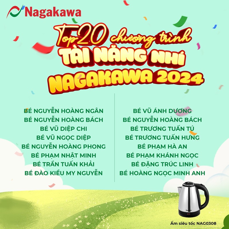 Nagakawa chân thành cảm ơn tất cả các bé và gia đình đã nhiệt tình tham gia Cuộc thi Tài năng Nhí Nagakawa 2024. Chúc các bé luôn khỏe mạnh, hạnh phúc, học tập tốt và có một tuổi thơ thật đẹp đẽ. Hy vọng sẽ tiếp tục nhận được sự ủng hộ và tham gia của các bé trong những hoạt động tiếp theo của Nagakawa.