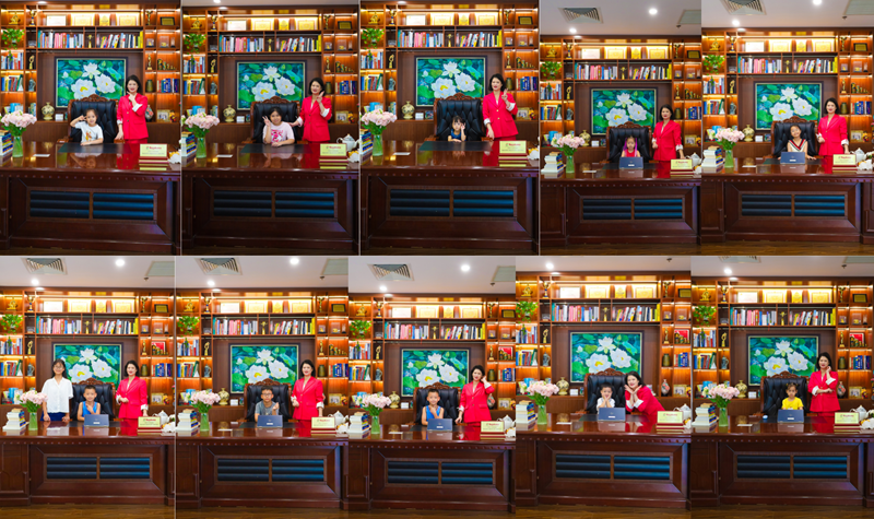 Một trong những điểm nhấn đặc biệt của sự kiện trao giải năm nay là phần "Thử làm Tổng tài nhí” – hoạt động độc đáo của chương trình đã tạo nên những khoảnh khắc vô cùng đáng nhớ. Các bé được hóa thân thành những “tổng giám đốc tí hon”, ngồi vào chiếc ghế lãnh đạo, chụp ảnh lưu niệm cùng Tổng giám đốc Nagakawa. Đây là khoảnh khắc vô cùng ý nghĩa và đáng nhớ, giúp các bé nuôi dưỡng ước mơ và tự tin thể hiện bản thân.