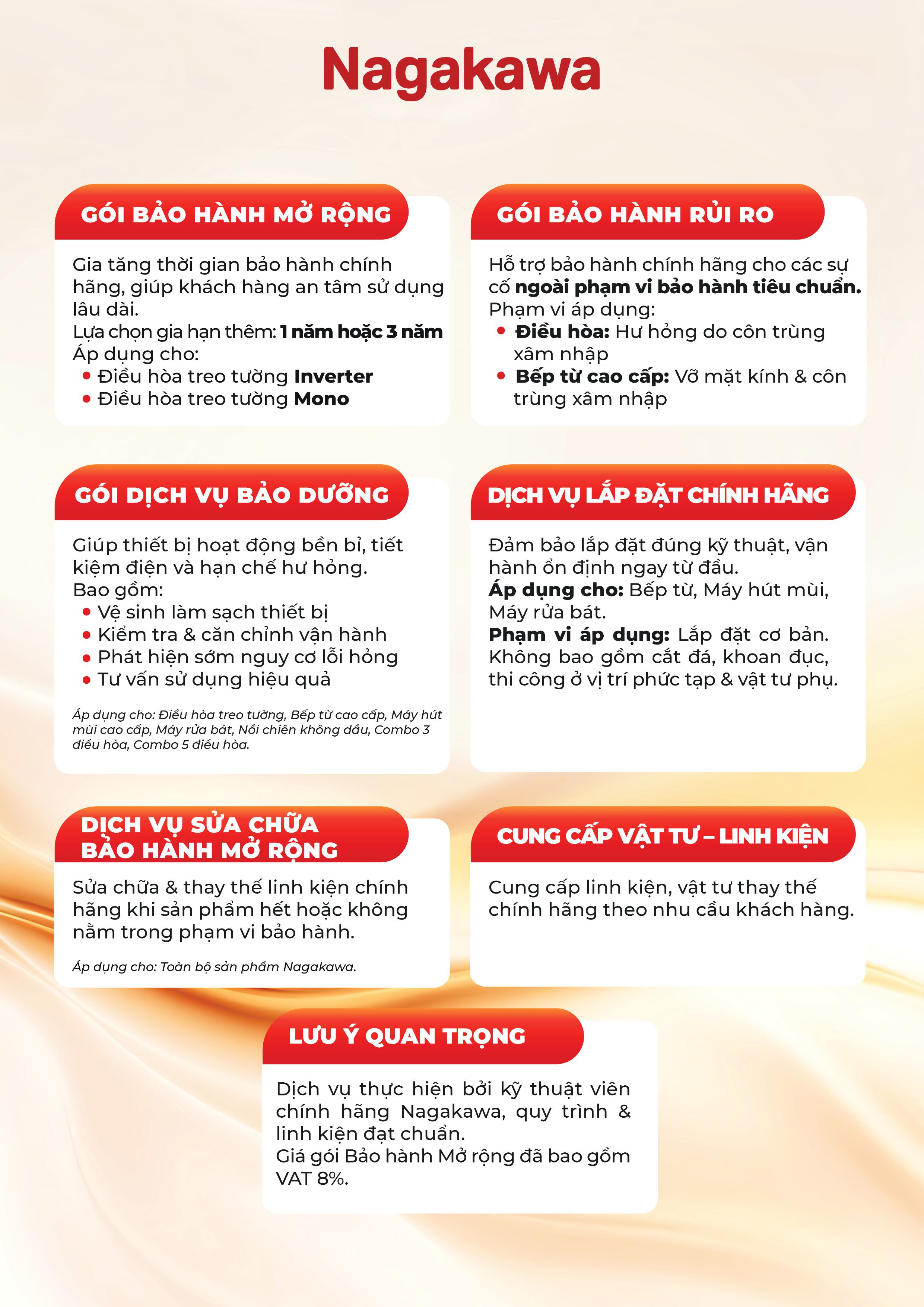 6 GÓI DỊCH VỤ BẢO HÀNH MỞ RỘNG NAGAKAWA - ĐÁP ỨNG ĐA DẠNG NHU CẦU KHÁCH HÀNG