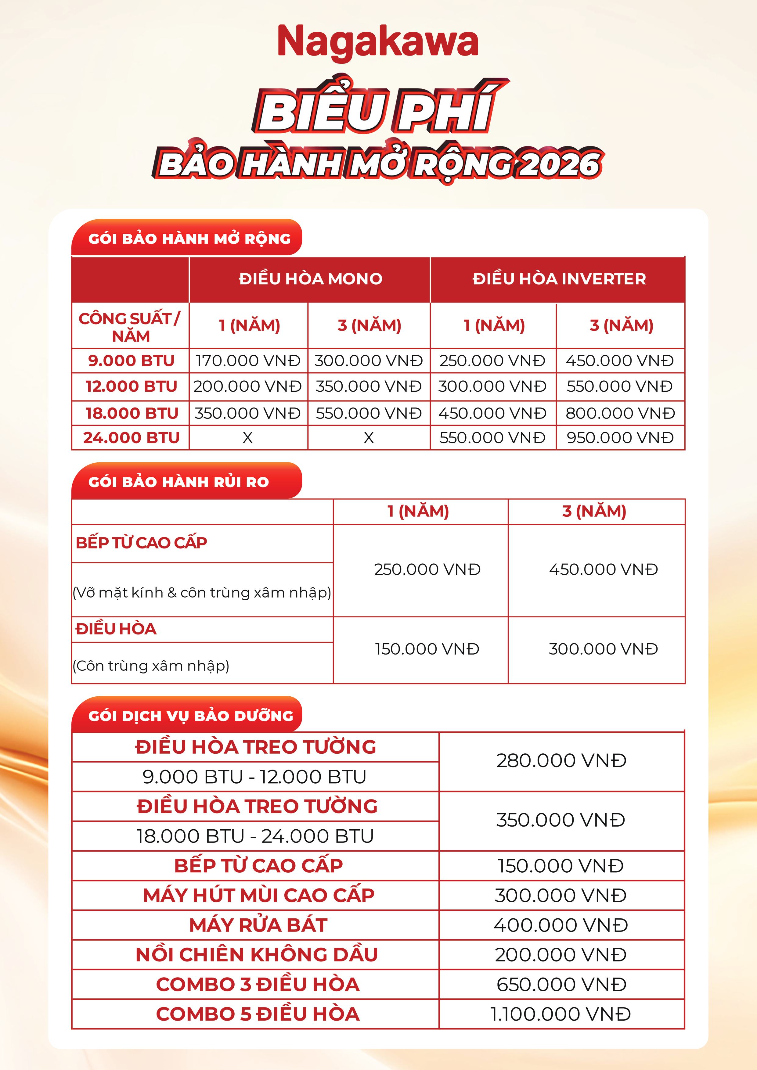 DỊCH VỤ BẢO HÀNH MỞ RỘNG NAGAKAWA 2026: GIẢI PHÁP CHĂM SÓC THIẾT BỊ TOÀN DIỆN, AN TÂM SỬ DỤNG DÀI LÂU
