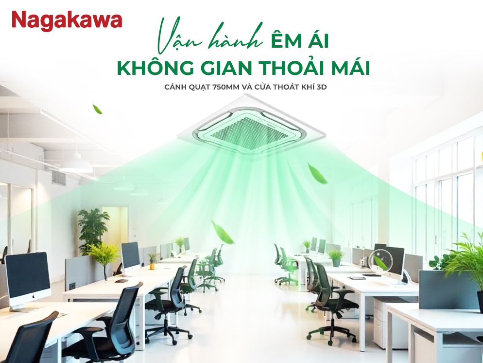 Cùng với thiết kế đa hướng thổi, chế độ đảo gió tự động của model Cassette 360° giúp khuyếch tán đều nhiệt độ cho cả văn phòng, mang lại cảm giác sảng khoái ngay từ những phút khởi động đầu tiên cho người sử dụng.