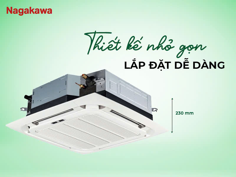 Thiết kế thon gọn với bề dày 230mm, thuận tiện cho việc lắp đặt. Đặc biệt thích hợp cho các phòng có trần treo thấp.