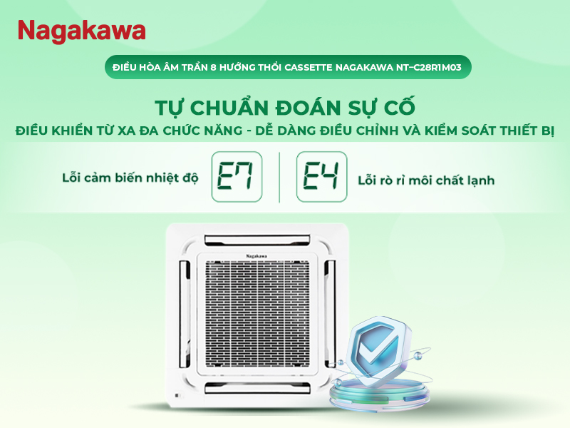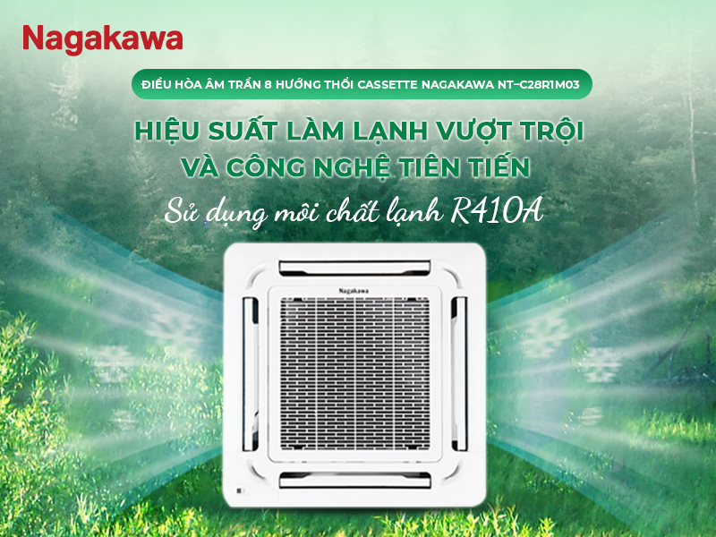 Điều hòa âm trần 8 hướng thổi Cassette Nagakawa NT–C28R1M03