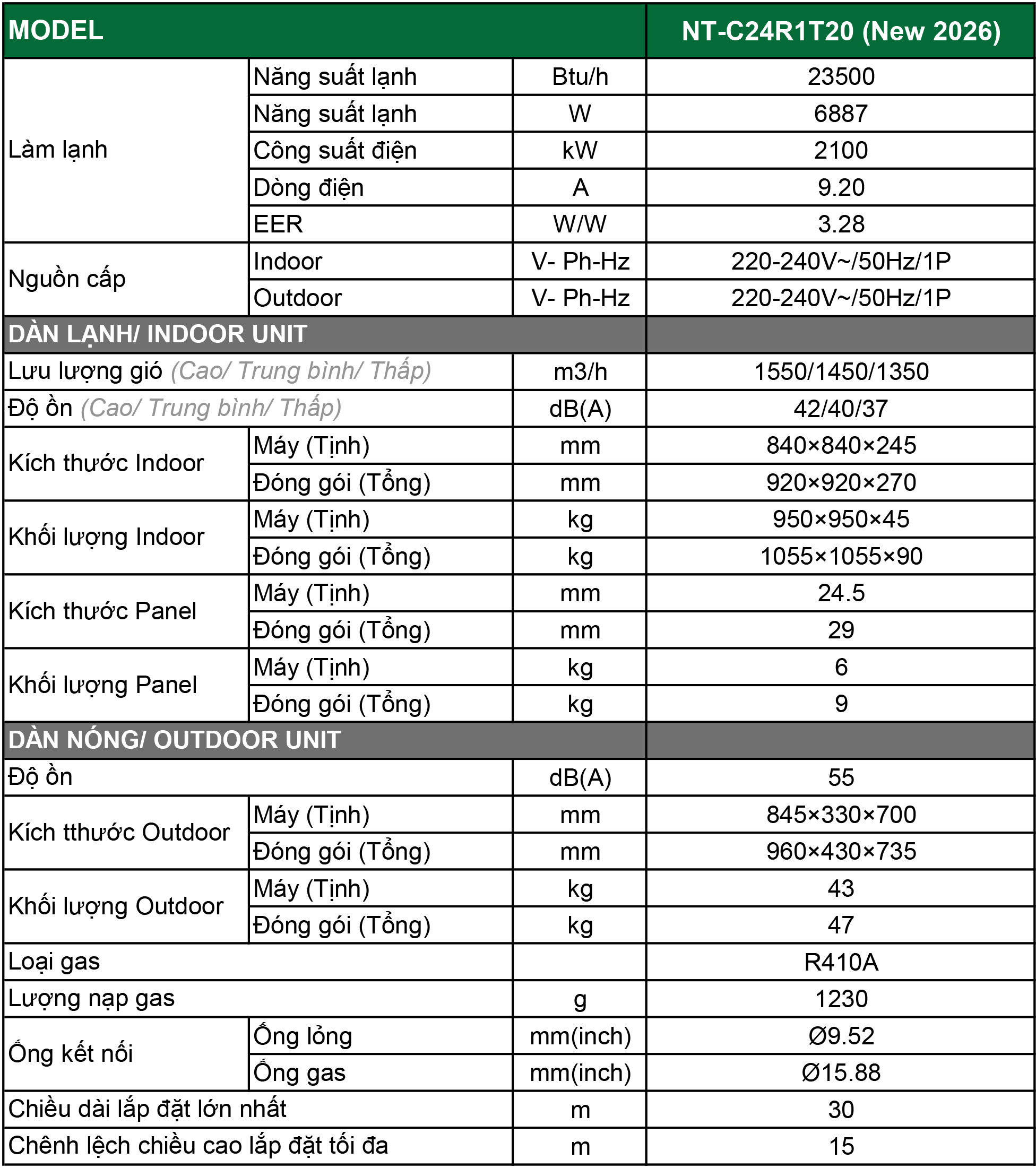 ĐIỀU HÒA ÂM TRẦN 1 CHIỀU NT-C24R1T20 – MÁT LẠNH BỀN LÂU, CHẤT LƯỢNG HÀNG ĐẦU