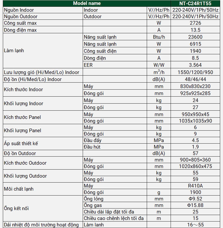 Với độ dày chỉ 245mm, điều hòa âm trần Nagakawa NT-C24R1T55 có dàn trao đổi nhiệt được cải tiến thiết kế giúp giảm độ dày của dàn lạnh, tiết kiệm không gian khi lắp đặt, phù hợp từ nhà xưởng, văn phòng đến nhà hàng, kể cả những nơi có trần nhà hạn chế. Hệ thống đường ống có kết cấu đơn giản, nhỏ gọn, dễ dàng lắp đặt, đảm bảo hiệu quả hoạt động tối ưu.