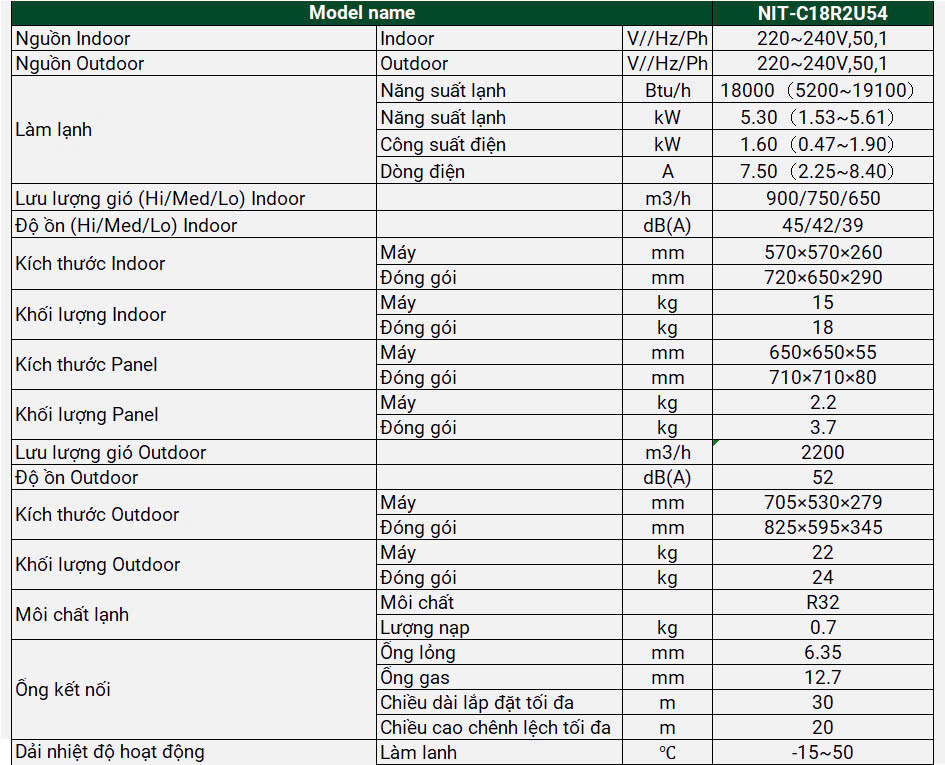 Nagakawa NIT-C18R2U54 là giải pháp lý tưởng cho các văn phòng, nhà hàng hay nhà xưởng cần điều hòa không khí mạnh mẽ, phân bổ đều, vận hành êm và đặc biệt tiết kiệm chi phí vận hành lâu dài.