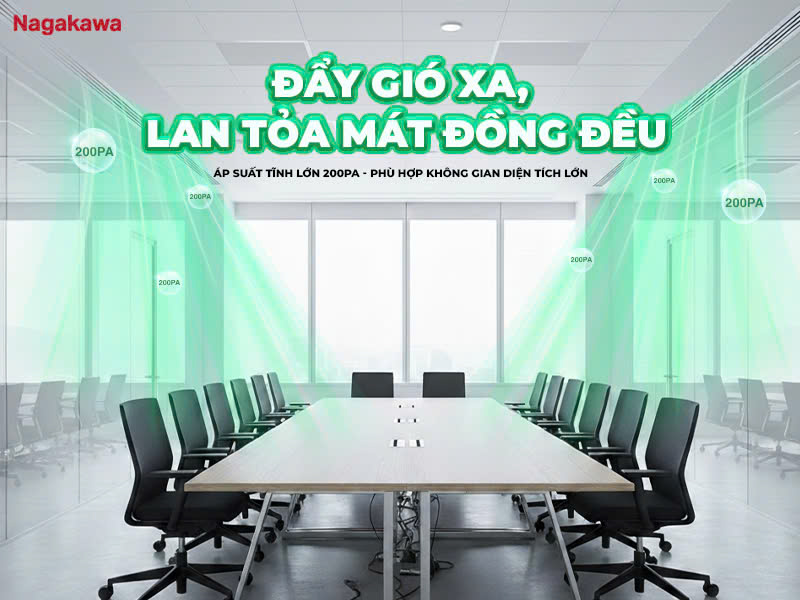 ÁP SUẤT TĨNH LỚN 200PA – ĐẨY GIÓ XA, LAN TỎA MÁT ĐỒNG ĐỀU