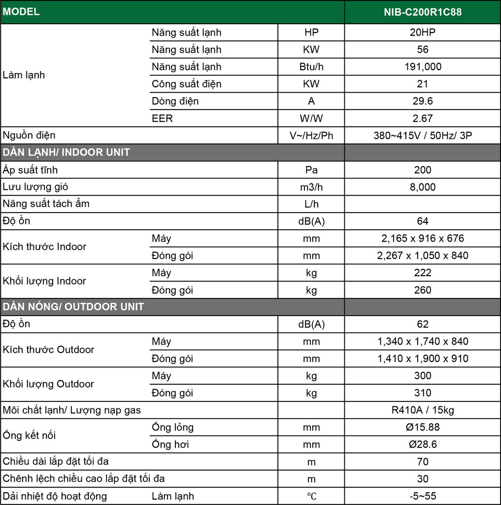 Điều hòa âm trần nối ống gió Inverter 20HP NIB-C200R1C88 – 1 chiều phù hợp với các văn phòng lớn, nhà hàng, trung tâm thương mại, phòng họp, hội trường, không gian thương mại nhiều khu vực.