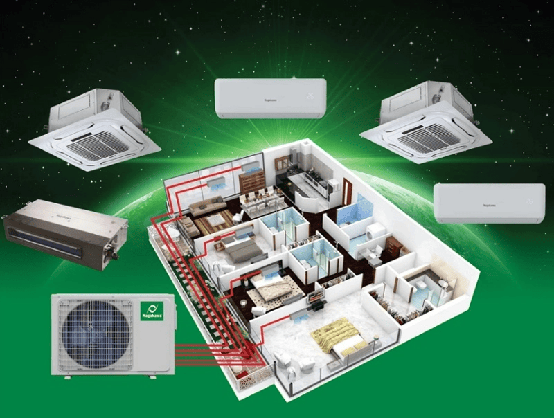 Hệ thống điều hòa trung tâm VRF Nagakawa thích hợp lắp đặt cho chung cư, biệt thự, nhà ở…