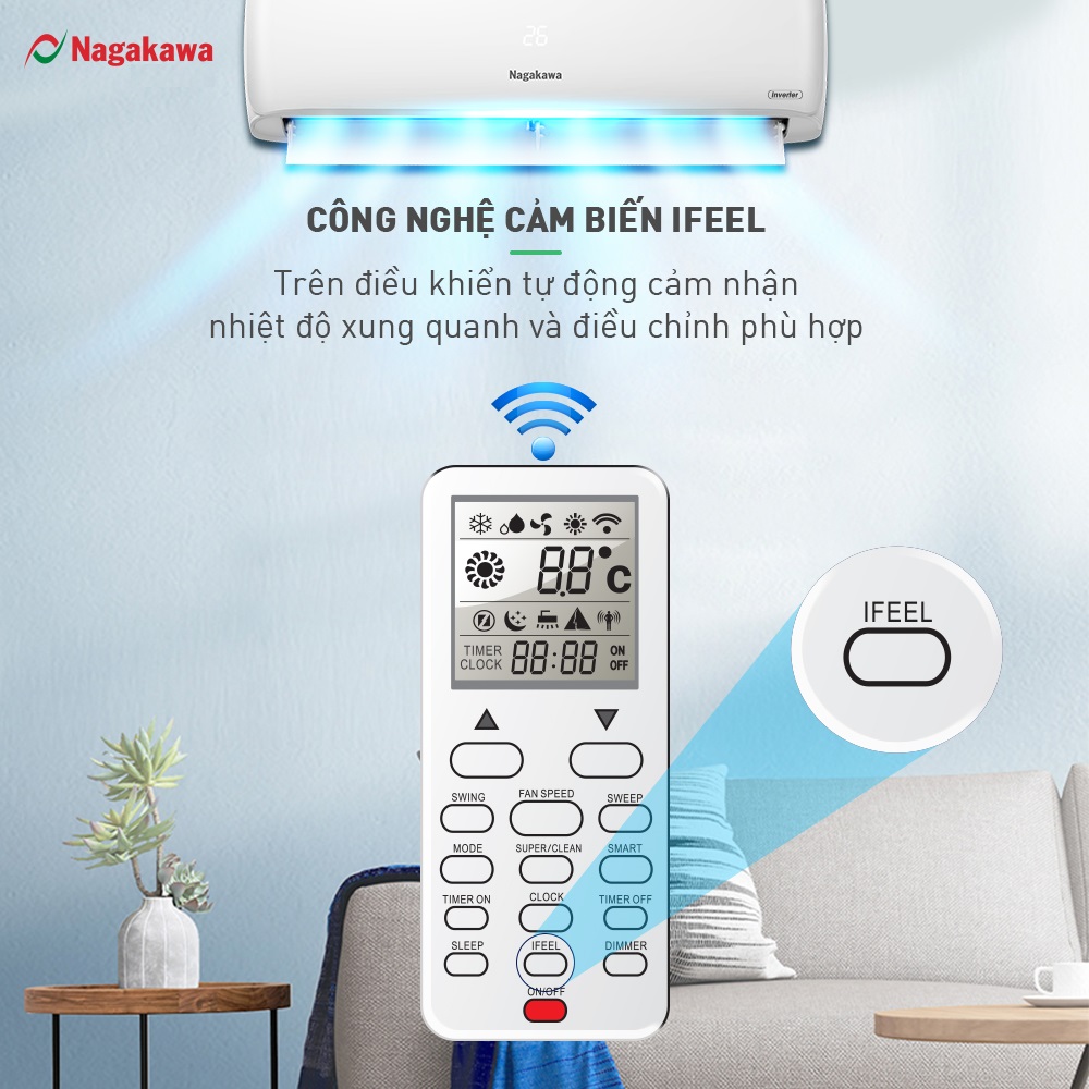 Theo như nghiên cứu cho thấy thì điều khiển điều hòa thường được đặt rất gần người sử dụng. Hiểu được điều đó nhằm mang lại sự thoải mái dễ chịu nhất tới người tiêu dùng cũng như tối ưu hóa quá trình hoạt động thì máy điều hòa Nagakawa được tích hợp cảm biến I-Feel trên điều khiển.
