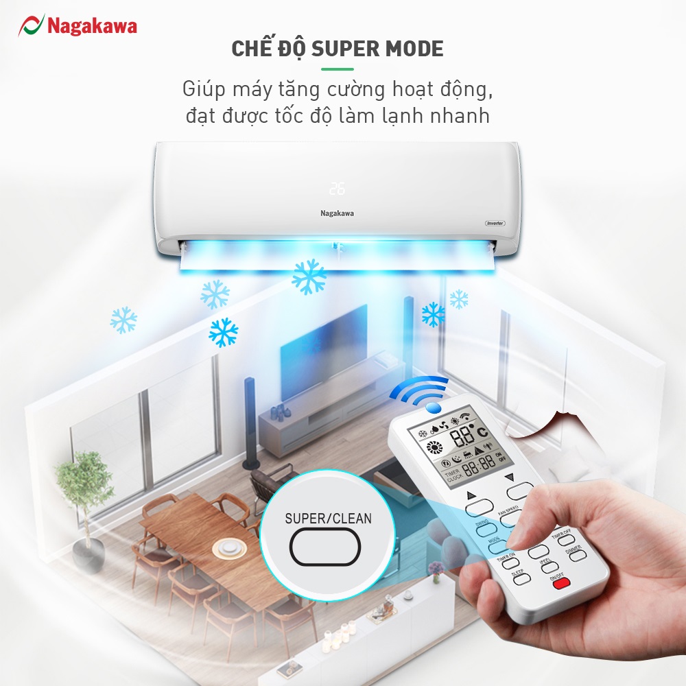 Đặc biệt hơn, với chức năng Super Mode giúp điều hòa tăng cường hoạt động, đạt được tốc độ làm lạnh nhanh và Smart Mode tự động cảm nhận nhiệt độ phòng, kích hoạt chế độ phù hợp cực kỳ tiện dụng cho người sử dụng